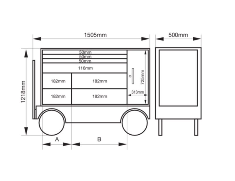 - Overall Dimensions: 1,505mm x 500mm x 1,218mm