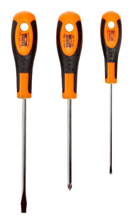 Bahco 600-3 3 Piece Slotted & Phillips Screwdriver Set With Rubber Grips