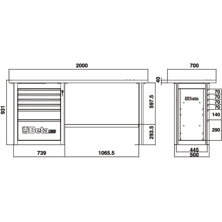 Beta C59A 2 Metre Endurance Workbench with 6 Drawers in Red