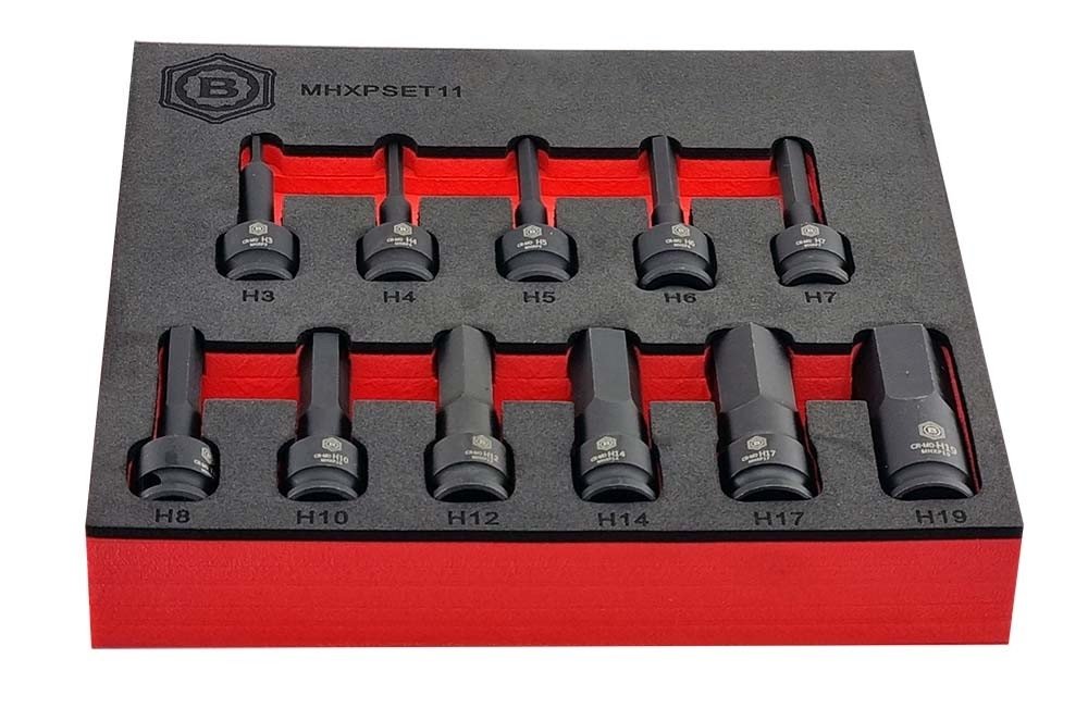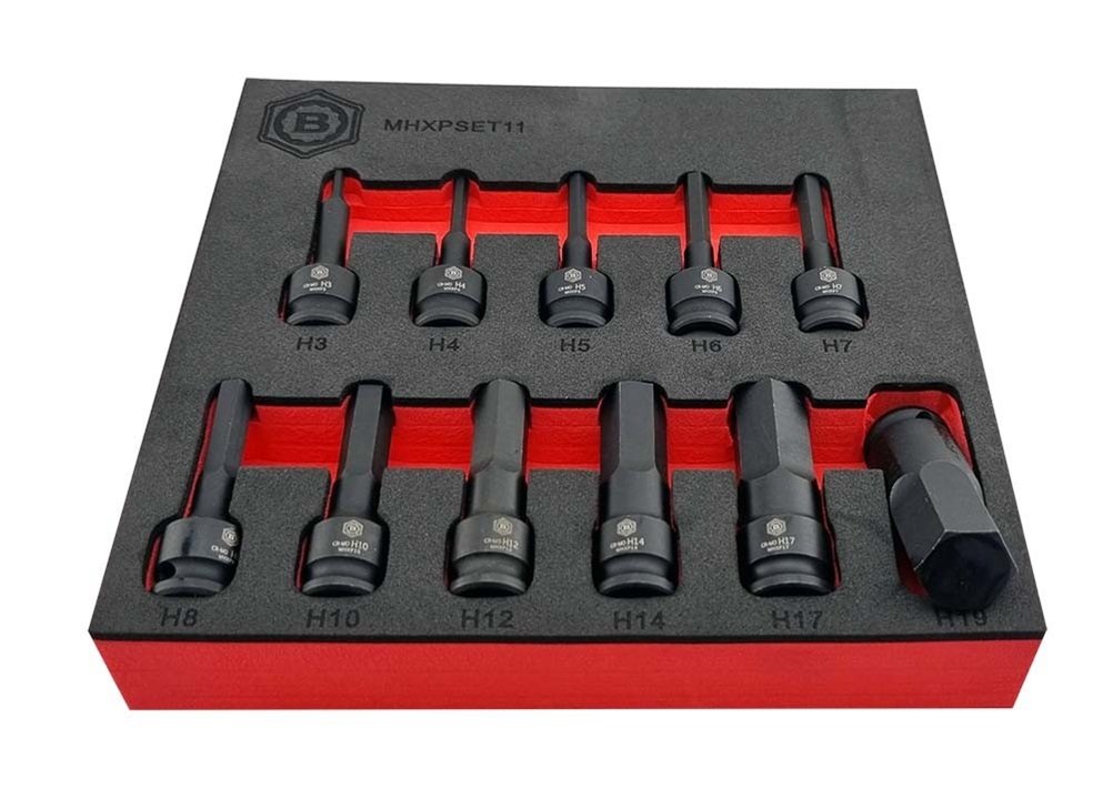 Britool Hallmark MHXPSET11 11 Piece 3/8″ Drive Impact Hex Bit Socket 3 – 19mm