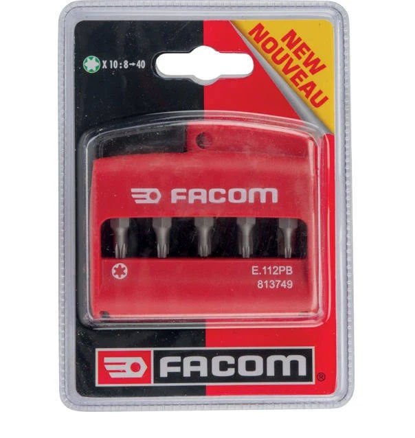 Facom E.112 11 Piece Torx Screwdriver Bit Set & 1/4″ Bit Holder T8-T40