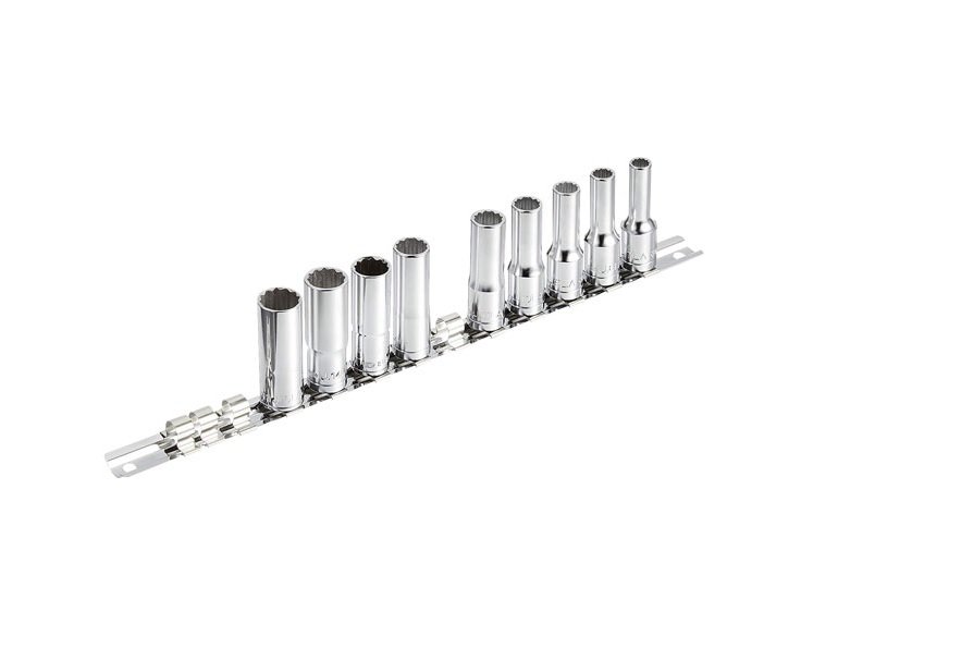 - qty. 9 x 3/8″ square drive metric 12-point long-reach (deep) sockets: J.LA 7, 8, 9 , 10, 11, 12, 13 , 14 & 15 mm.