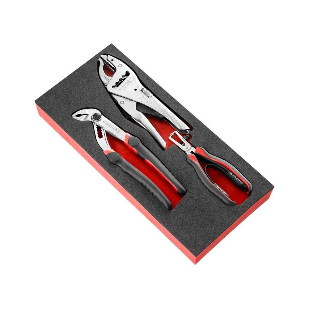 Facom MODM.CPEA3 3 Piece Multigrip, Lock and Wire Stripping Plier Set Supplied in Foam Module Tray