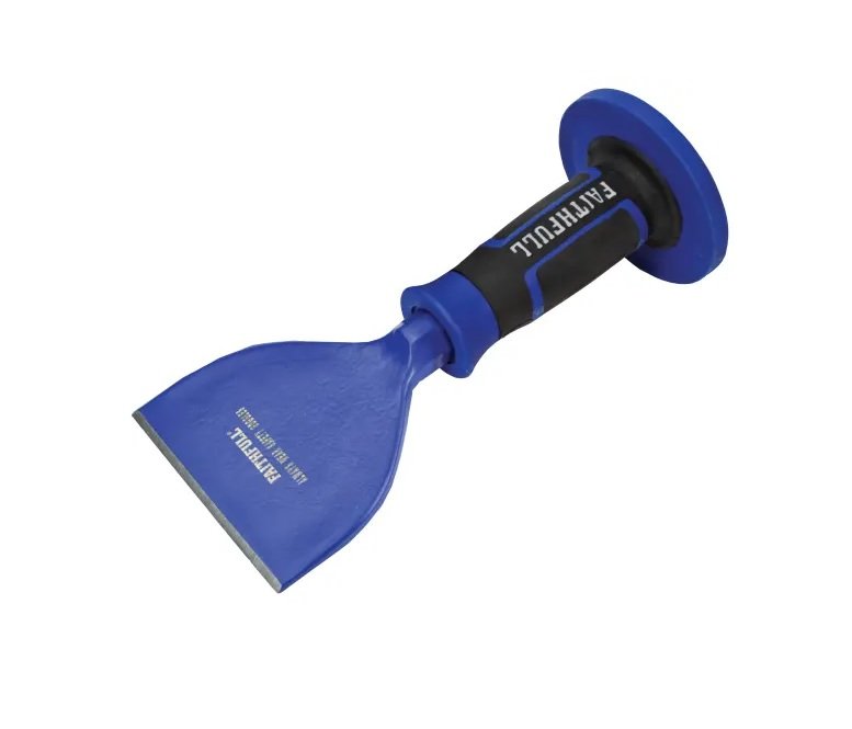 This chisel has a suitably hardened cutting edge, but should not be used on concrete containing reinforcing bars. - Fitted with plastic safety grip.