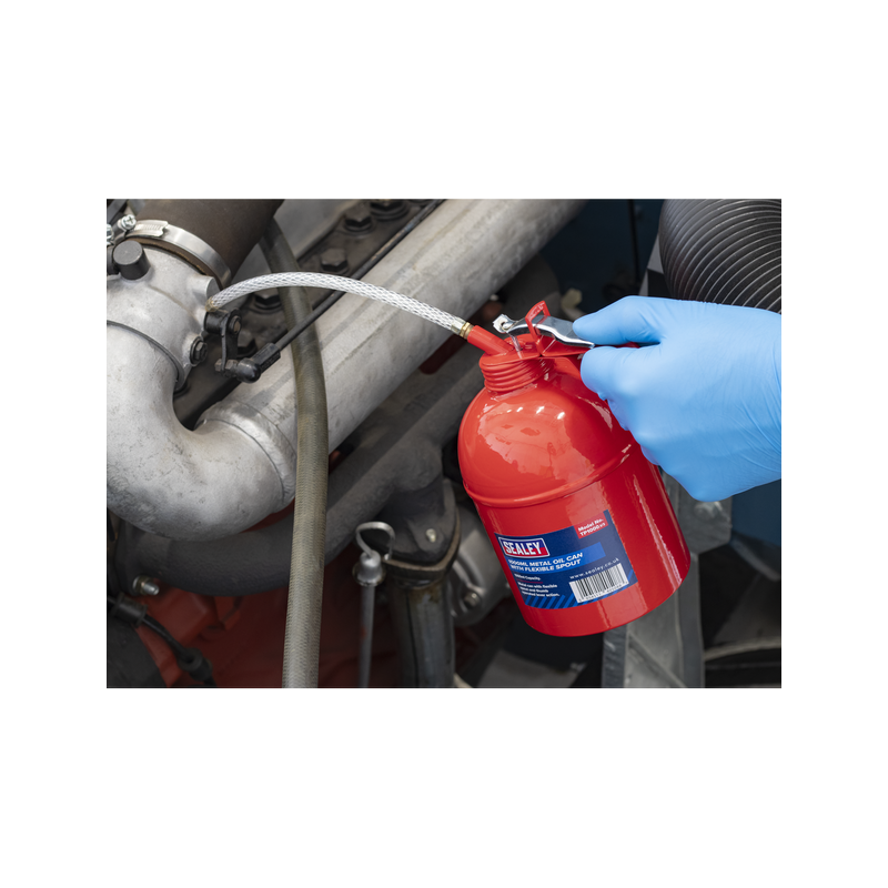 Sealey TP1000 1 Litre Thumb-Operated Lever Metal Oil Can With Flexible Spout