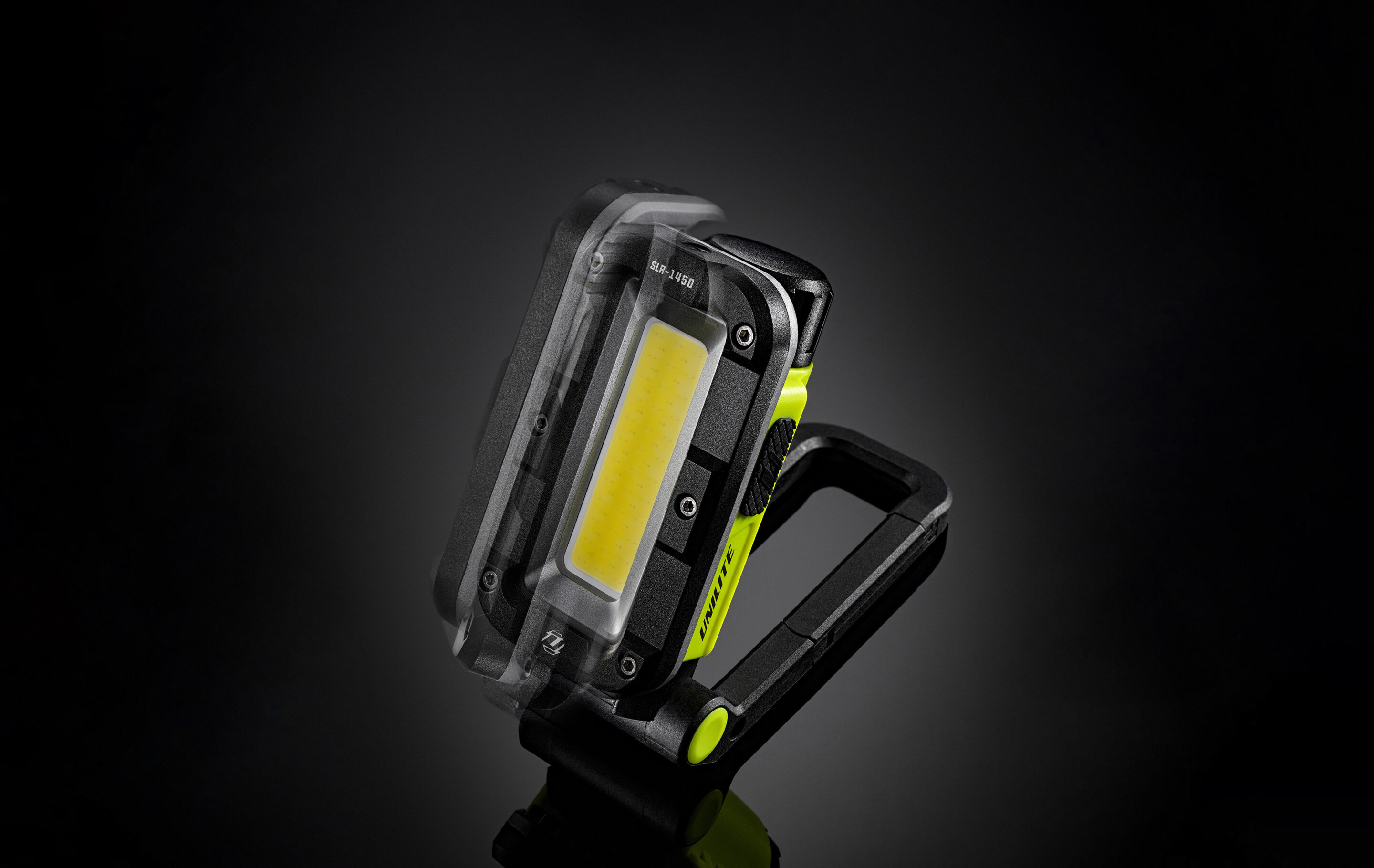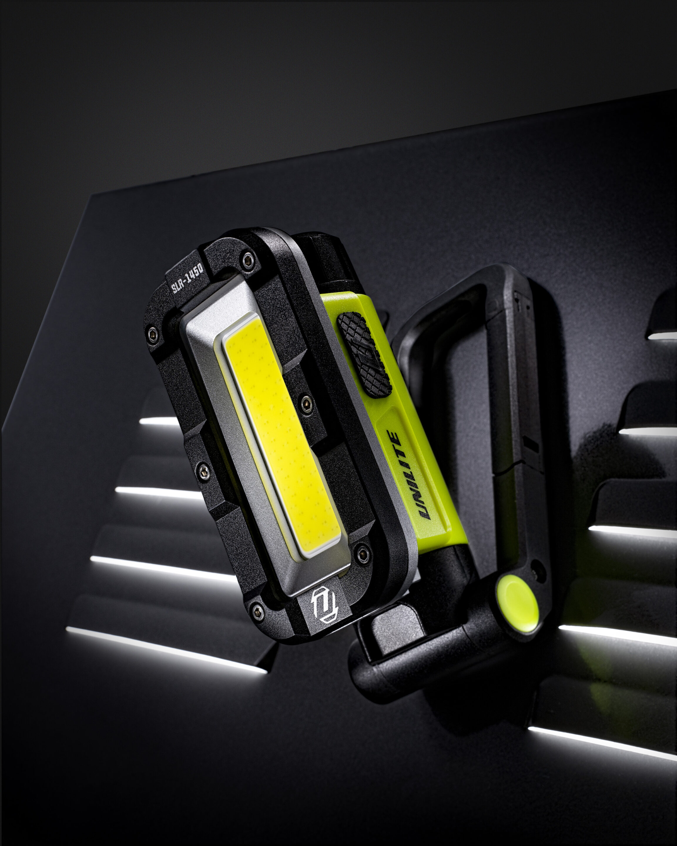 - The SLR-1450 Work Light, featuring a powerful 1450 lumen white COB LED with 6500k color temperature.