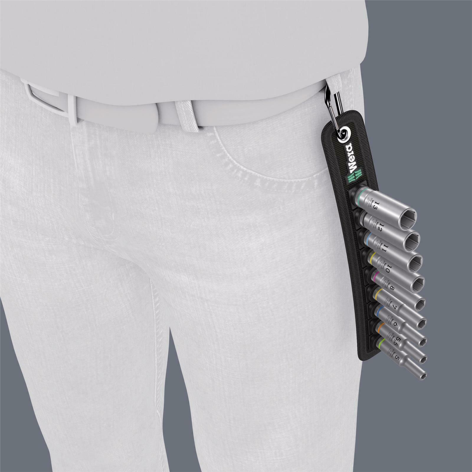 Wera 004525 9 Piece 1/4″ Square Drive Deep Hex Socket Set & Rail, Belt A 5-13mm