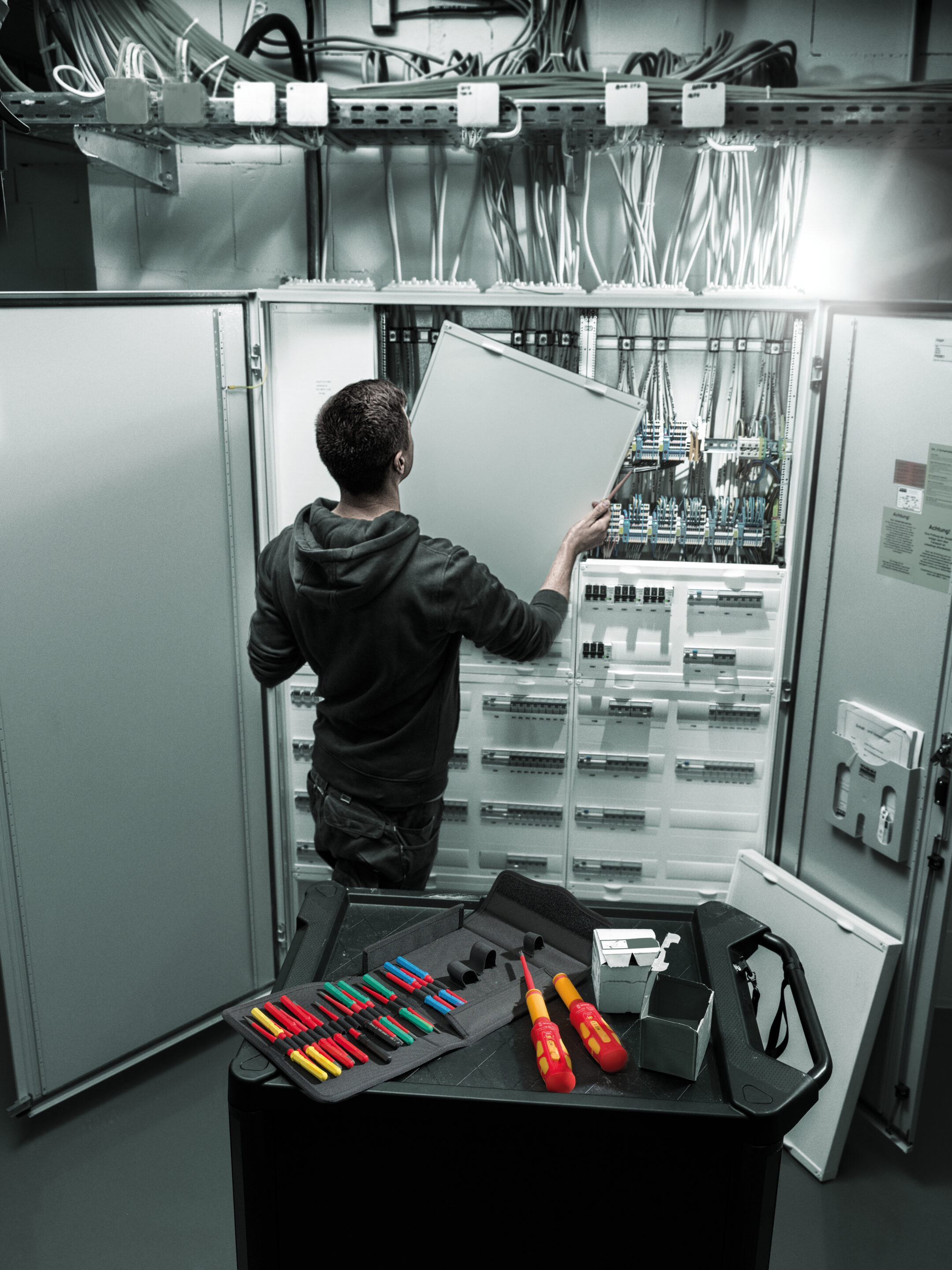Torque wrenches and blade holding screwdriver solely for Wera VDE blades. 20 VDE blades (each 157 mm length) with Take it easy tool finder: colour coding by profile and laser-engraved size indication, most of which with reduced blade diameter, so that even low-lying screw and spring elements can be easily reached and operated. In a robust textile box for neat storage and convenient transport.
