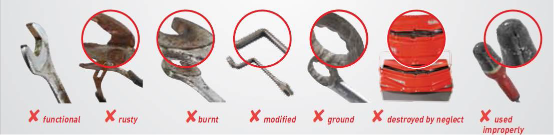 Warranty claims for the below will automatically be rejected and deemed as wear and tear of the tool:
